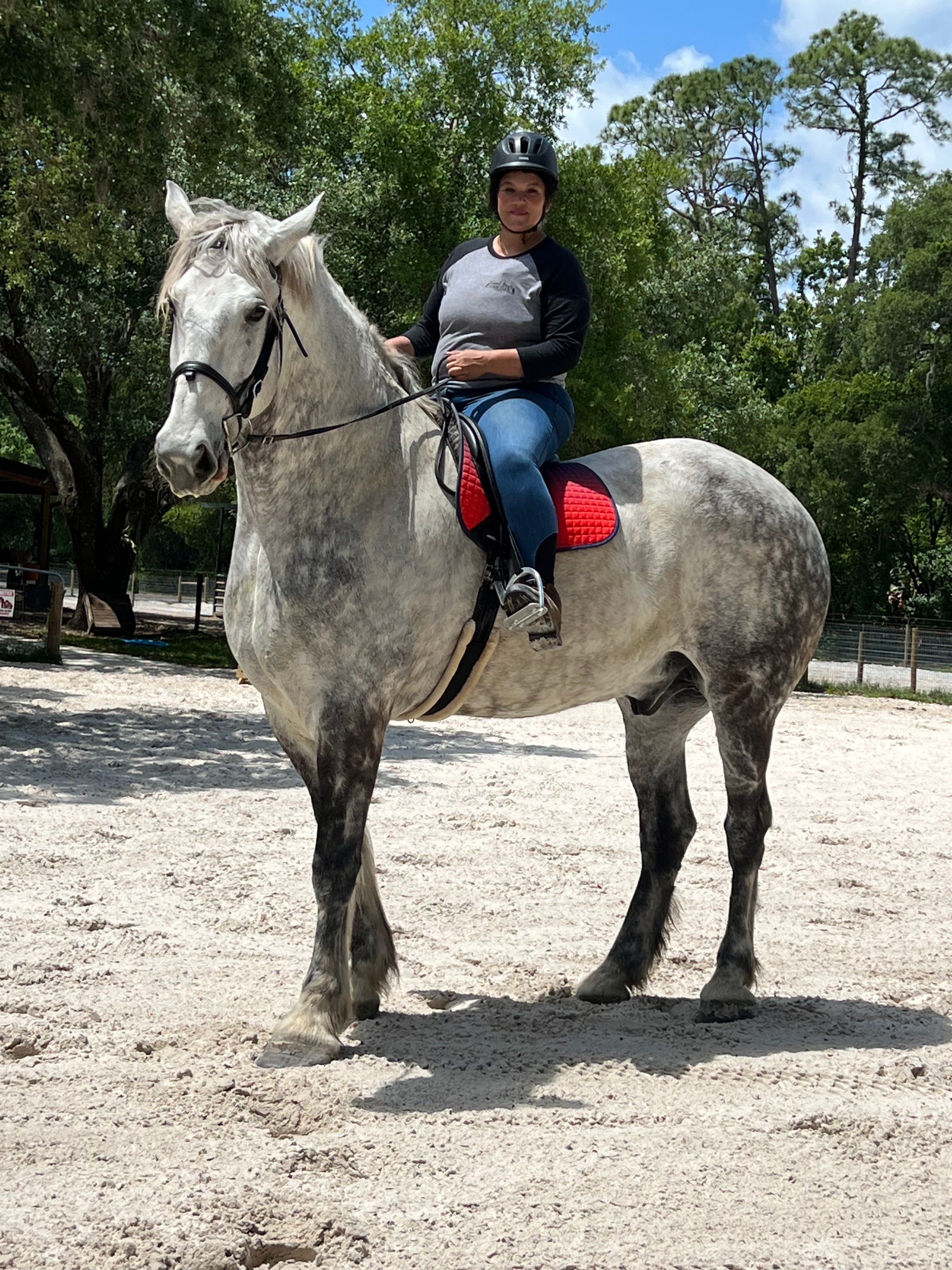 Harold is available for sale to the most perfect family. He is literally the kindest horse you will ever meet. He’s therapeutic to be around – for real. Harold is not for a beginner rider, he is forward and loves to trot, canter and even jump fences. He would be a great equitation horse or low level dressage. Harold has the smoothest of gates and actually feels like a gaited horse he is so smooth. Harold also drives and was a hitch horse for most of his life. Harold has been in training here at the farm as he was not utilized for over a year prior to coming here and should continue training with his new owners. He is perfect for the farrier, no bad habits, easiest of easy keepers and no maintenance.